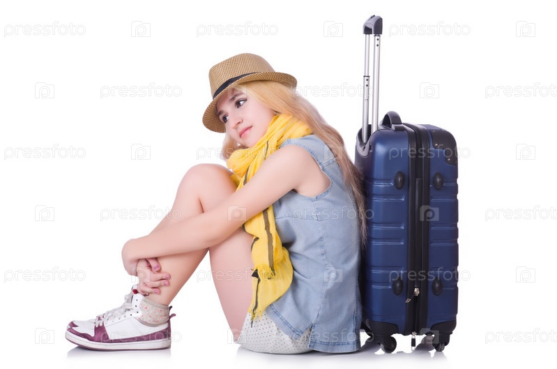 Молодая девушка путешественник, изолированная на белом