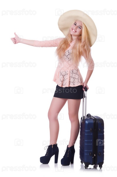 Молодая женщина, готовая к летним каникулам, на белом фоне