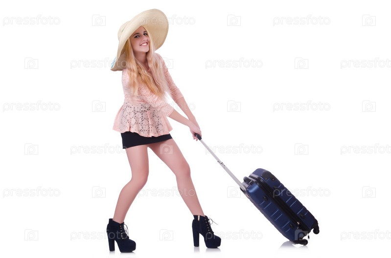 Молодая женщина, готовая к летним каникулам, на белом фоне