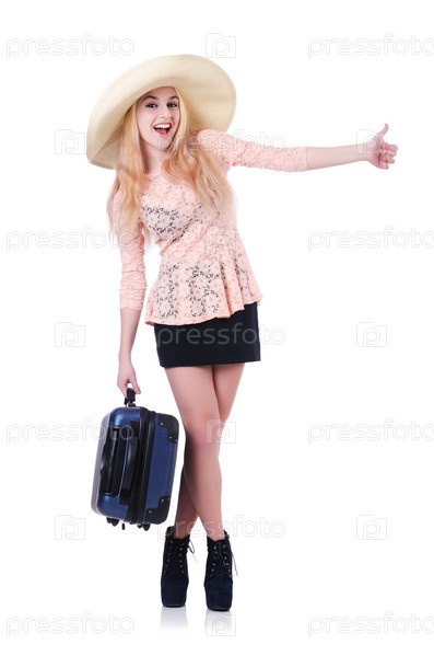 Молодая женщина, готовая к летним каникулам, на белом фоне