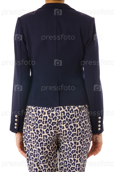 Женщина в модной одежде на белом фоне, концепция моды