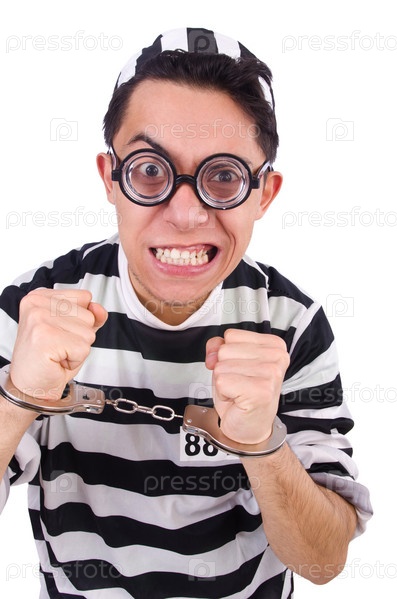 Смешной осужденный, изолированный на белом