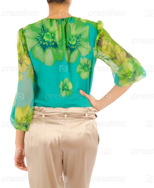 Женщина в модной одежде на белом фоне