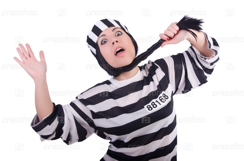 Заключенный в полосатой форме на белом фоне