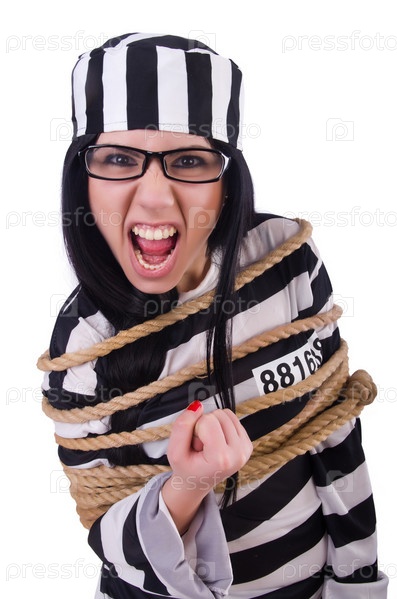 Заключенный в полосатой форме на белом фоне