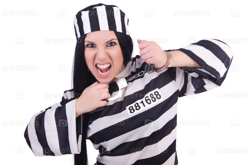 Заключенный в полосатой форме на белом фоне