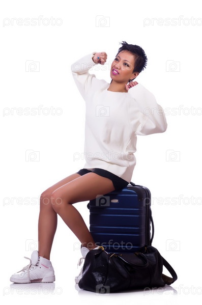 Молодая женщина, готовая к летним каникулам, на белом фоне