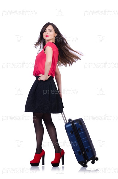 Молодая женщина, готовая к летним каникулам, на белом фоне