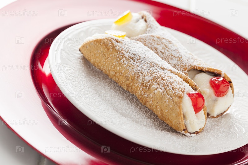Два вкусных канноли на тарелке