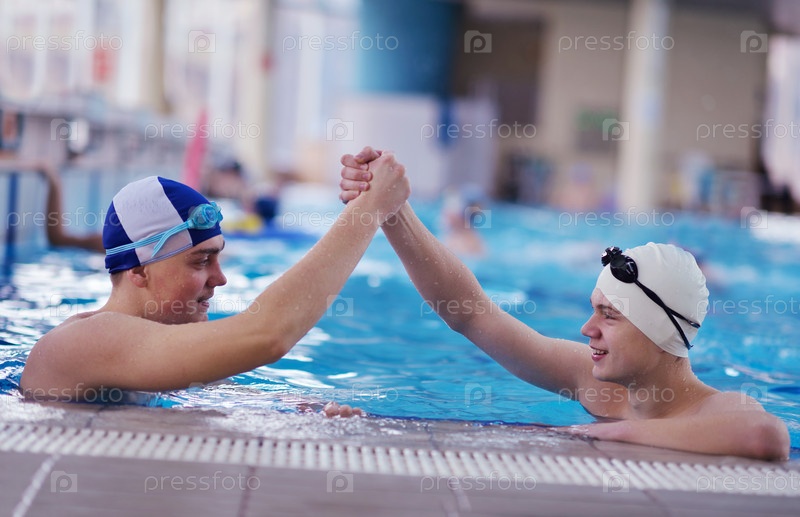 Счастливые подростки в плавательном бассейне