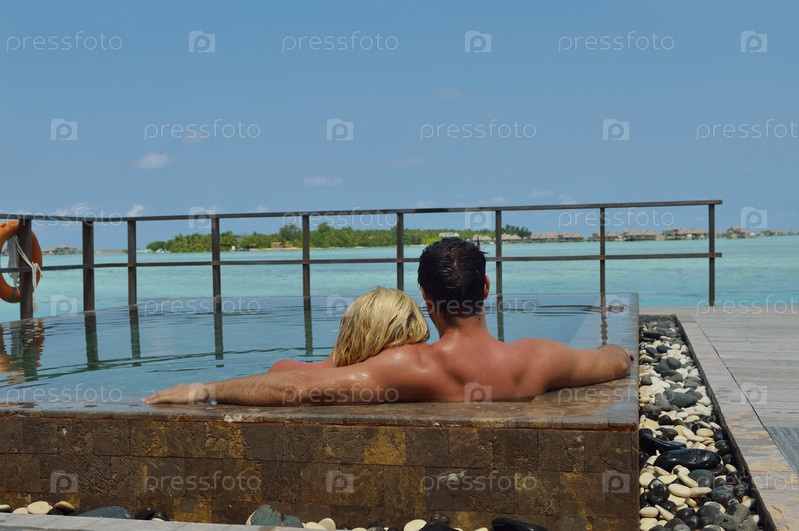 Счастливая молодая пара весело проводит время на пляже во время летних каникул