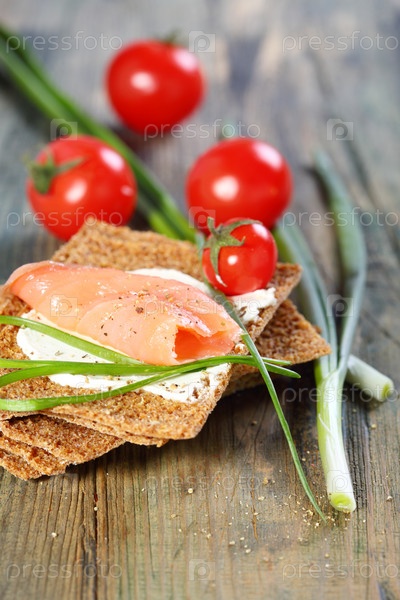 Хлеб с лососем и зеленым луком