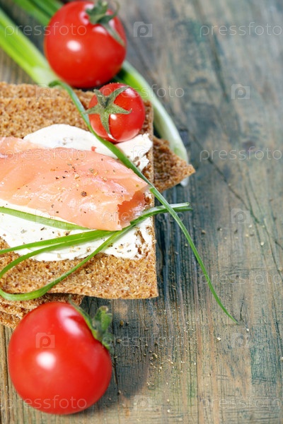 Хлеб с лососем, плавленым сыром и зеленым луком