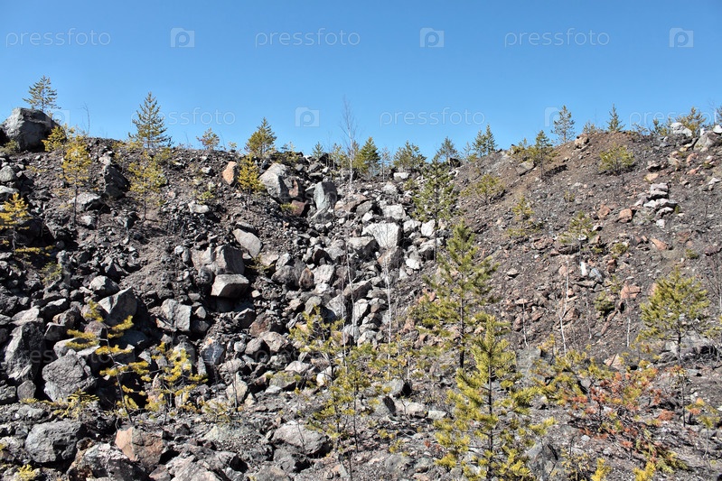 Молодые сосны на каменистой горке