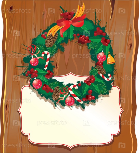 Рождественский венок на деревянном фоне