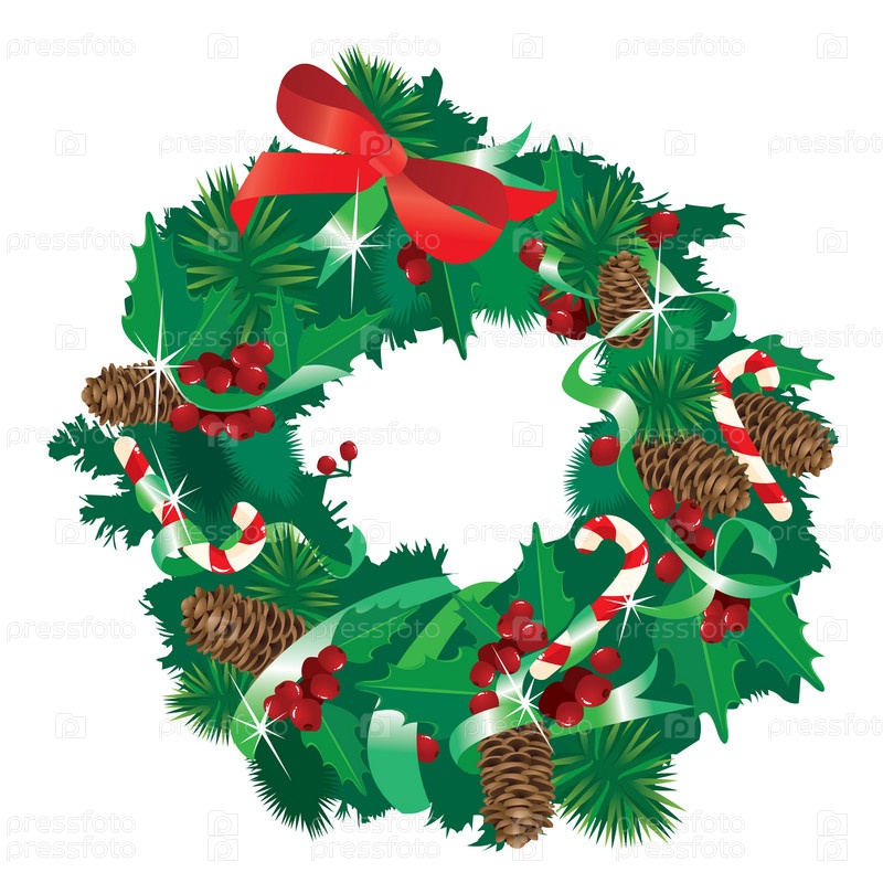 Рождественский венок, изолированный на белом фоне