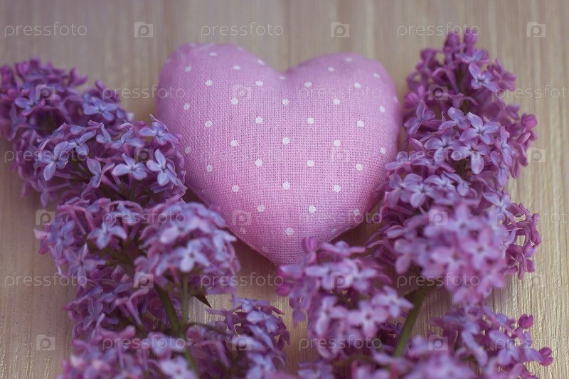 Текстильное сердце в горошек с сиренью
