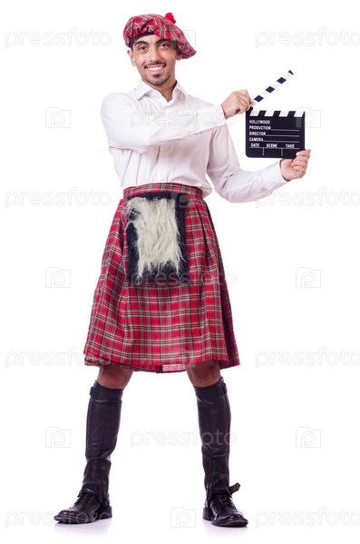 Шотландец с кинохлопушкой на белом