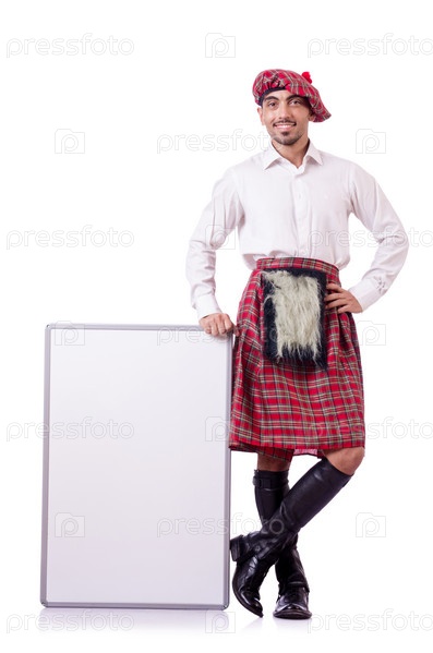 Шотландец с пустым баннером на белом