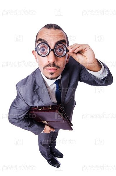 Смешной бизнесмен в очках, изолированный на белом фоне