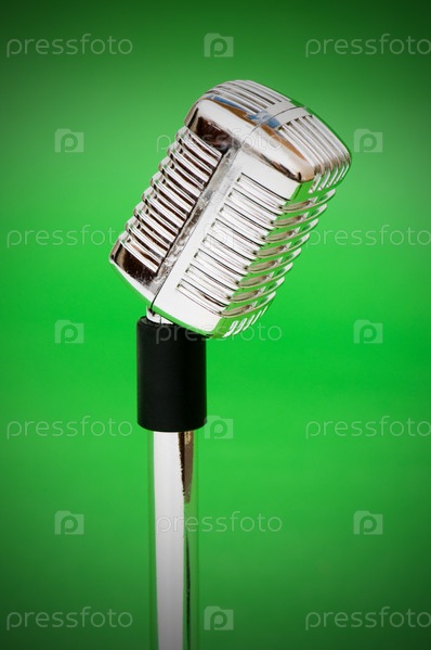 Винтажный микрофон на ярко-зеленом фоне