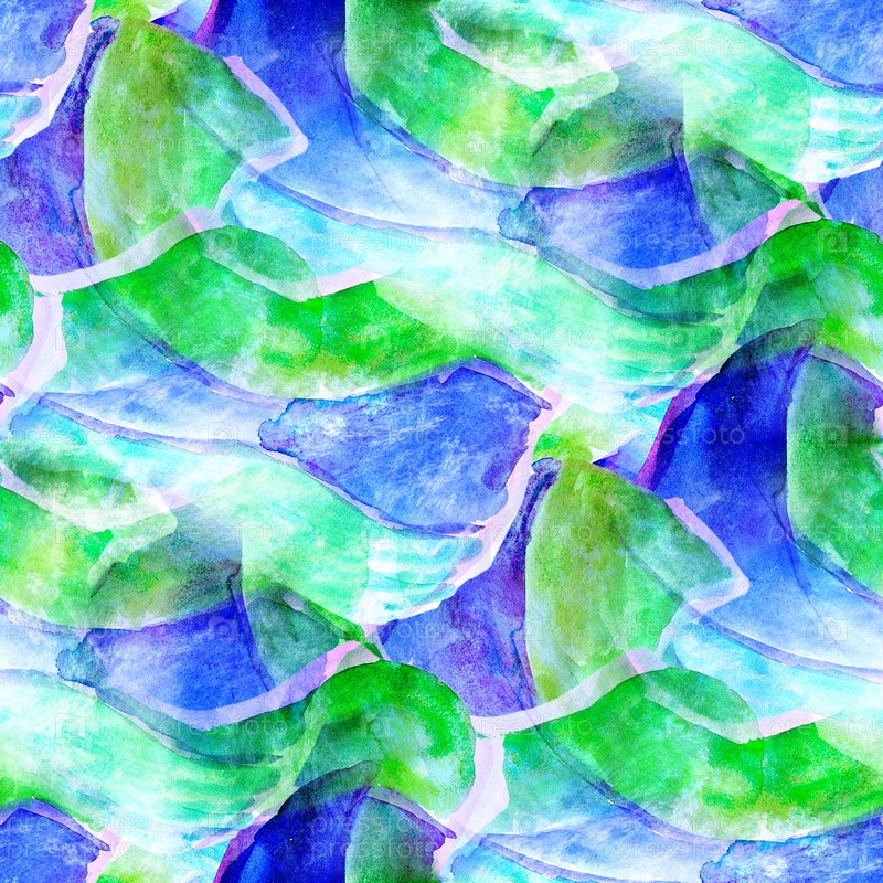 Синий, зеленый бесшовный акварельный абстрактный фон