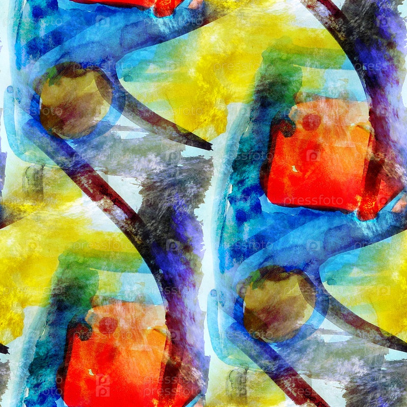 Синий, красный, желтый бесшовный акварельный абстрактный фон