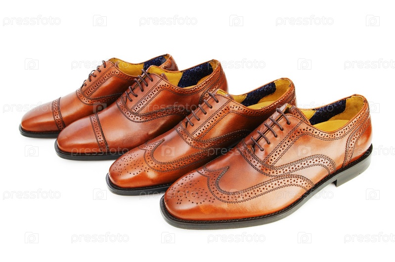 Мужские коричневые кожаные туфли на белом фоне