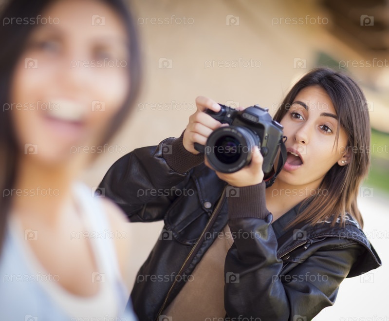 Женщина-фотограф смешанной расы фотографирует знамнитость