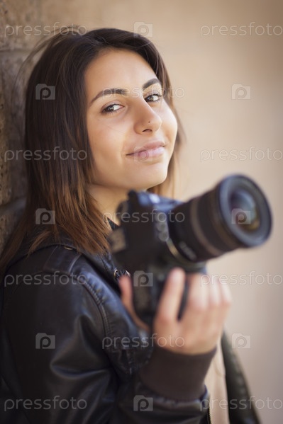 Женщина-фотограф с фотокамерой