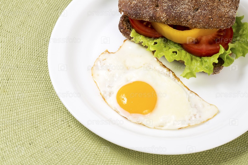 Бутерброд с овощами и яичница на завтрак