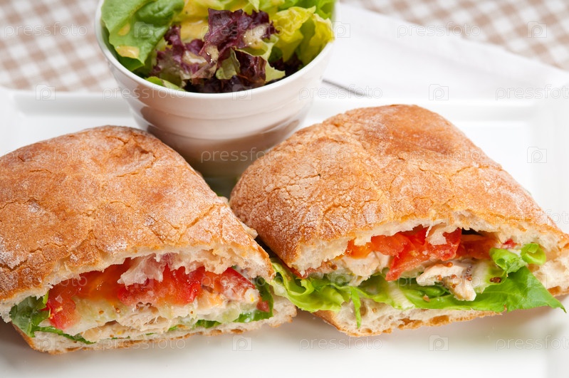 Сэндвич с хлебом чиабатта, курицей и помидором