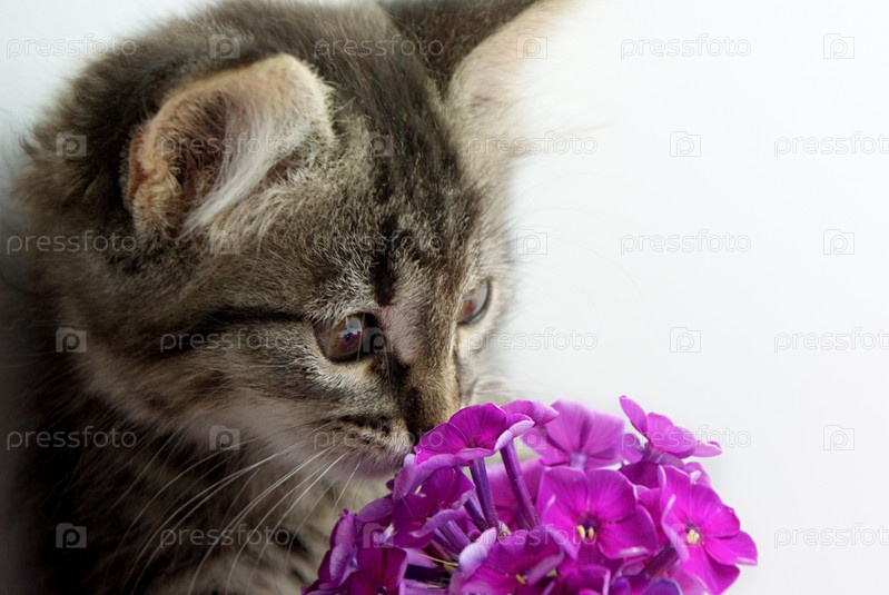 Котенок с цветами