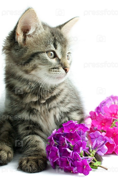 Котенок с цветами