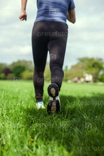 Молодая женщина бежит по траве
