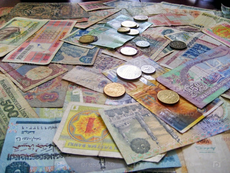 Банкноты и монеты различных национальных валют