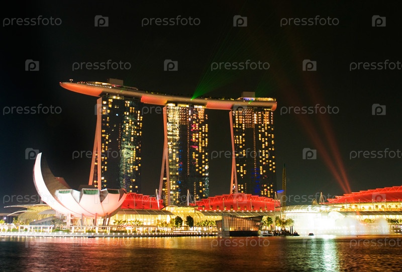 Сингапур - 23 августа: лазерное шоу на набережной Марина Бэй. Крупнейшее световое шоу в Юго-Восточной Азии