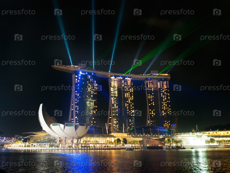 Сингапур - 23 августа: лазерное шоу на набережной Марина Бэй. Крупнейшее световое шоу в Юго-Восточной Азии