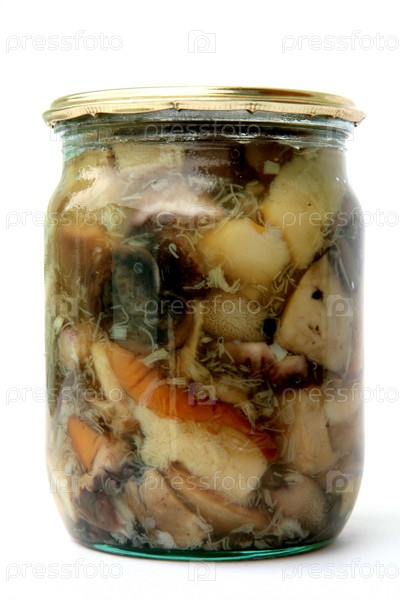 Маринованные грибы на белом фоне