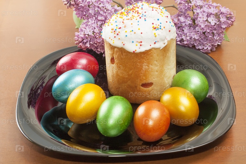 Пасхальный кулич и крашеные яйца