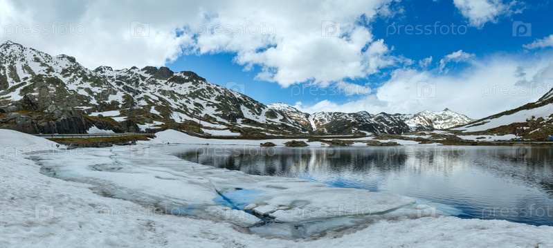 Альпийское горное озеро. Весенняя панорама
