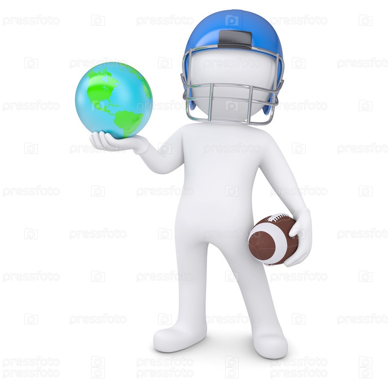 3D-человек в футбольном шлеме держит Землю