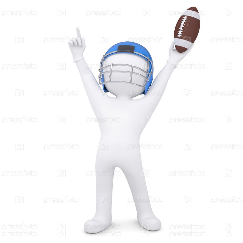 3D-человек в футбольном шлеме поднял руки вверх