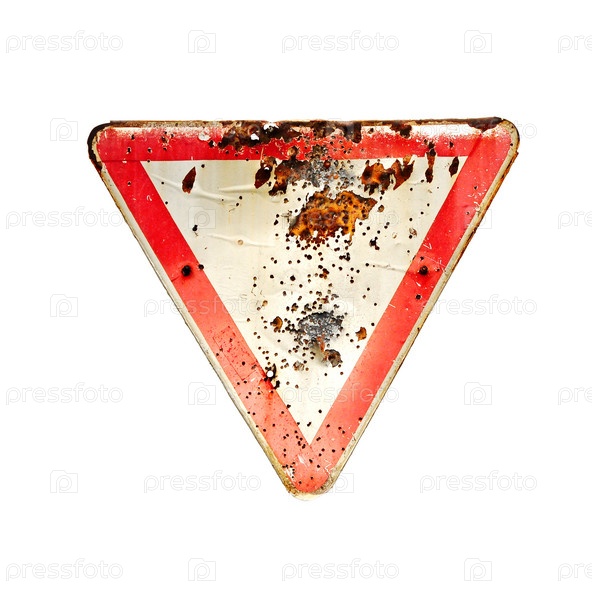Старый ржавый дорожный знак, изолированный на белом фоне