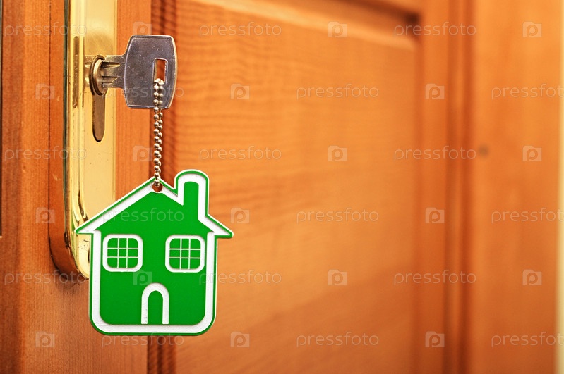 Ключ в замочной скважине с биркой в виде дома