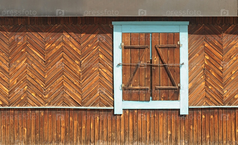 Окно в старом деревянном доме на фоне деревянных стен