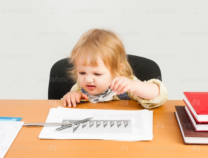 Маленькая девочка анализирует диаграмму