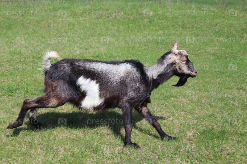 Коза бежит на пастбище