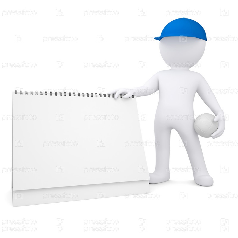 3D белый человек с волейбольным мячом и баннером