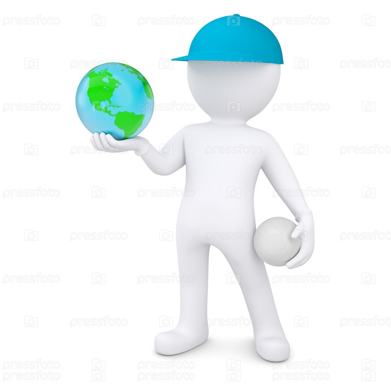 3D человек с мячом и глобусом
